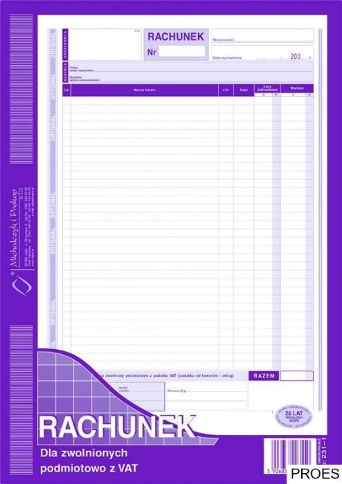 231-1 Rachunek A4 dla zw.z VAT MICHALCZYK I PROKOP