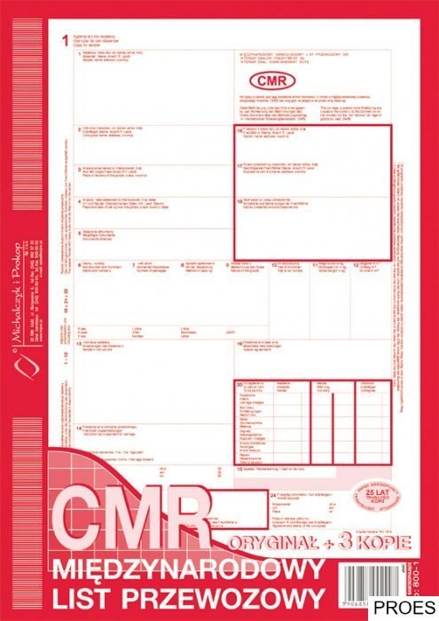 800-1N CMR A4 80kartek 1+3 numerowany międzynarodowy list przewozowy M&P