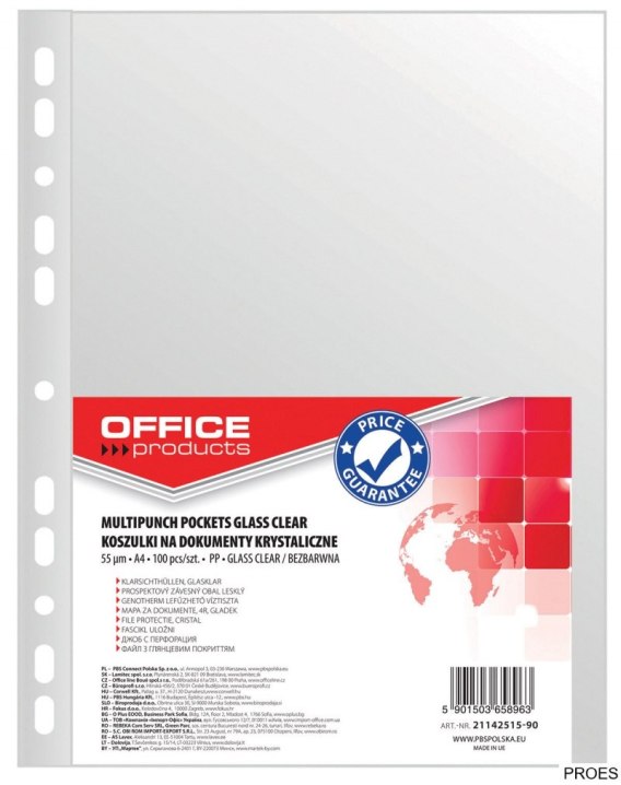 Koszulki na dokumenty , PP, A4, krystal, 55mikr., 100szt., typu OFFICE PRODUCTS 21142515-90