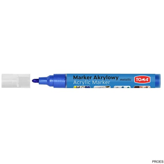 Marker Akrylowy do zdobienia i malowania po papierze, kartonie, płótnie, styropianie, drewnie i wielu innych powierzchniach. Farba akrylowa na bazie wody, nietoksyczna, nie zawiera ksylenu. Dzięki szerokiej barwie kolorystycznej, marker ten jest idealnym produktem dla artystów. Dostępny w 22 kolorach. Przed użyciem dobrze wstrząsnąć i naciskać końcówkę, aż do do wypłynięcia farby.