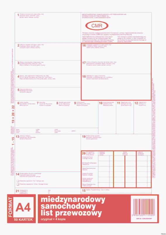 Numerowany międzynarodowy list przewozowy CMR, (1+4) A4 80 kartek, 10-800-2N DOTTS