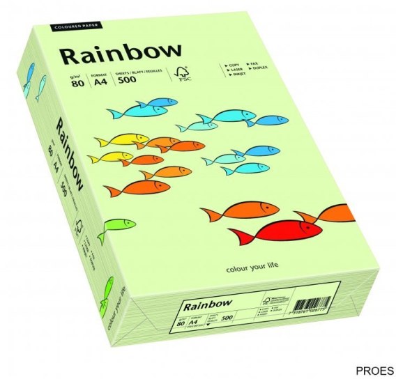 Papier ksero kolorowy Rainbow - wysokiej jakości, kolorowy papier, bezdrzewny, barwiony w masie, o szerokim wachlarzu kolorystycznym- zalecany do wydruków faksowych, korespondencji oraz zaproszeń i ulotek - pakowany w eleganckie przezroczyste opakowanie - dostępny w 25 kolorach, w gramaturze 80 i 160 g/m - osiągalny w formatach: A4 80 g/m , A4 160 g/m i A3 80 g/m - w ofercie Rainbow dostępny jest również mix kolorów pastelowych, mix kolorów intensywnych (pakowane po 5 kolorów x 20 arkuszy), oraz mix kolorów neonowych (pakowane po 4 kolory x 50 arkuszy) - wykorzystanie:wiadomości faksowe, korespondencja wewnętrzna firmowa, zaproszenia - zastosowanie: drukarki atramentowe, laserowe, offset - gramatura 80 g/m - jednostka sprzedaży 1 ryza (500 ark)