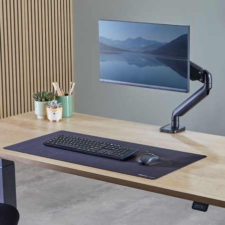 Przestronna mata na biurko chroni przed zabrudzeniami i zarysowaniami oraz tworzy powierzchnię pracy wolną od odblasków _Poprawia komfort korzystania z myszy. Zapewnia wygodną powierzchnię do pisania, korzystania z klawiatury i myszy, _Wbudowana ochrona Microban_ pomaga zapobiegać rozwojowi bakterii. Działa 24 godziny na dobę, zapewniając dodatkową ochronę produktu _Wykonana w 83% z materiałów pochodzących z recyklingu pokonsumenckiego. _Antypoślizgowa podstawa utrzymuje matę na biurku przez cały dzień. _Trwałe, płaskie przeszycia zapobiegają strzępieniu się krawędzi. _Wytrzymała konstrukcja objęta 5-letnią ograniczoną gwarancją.