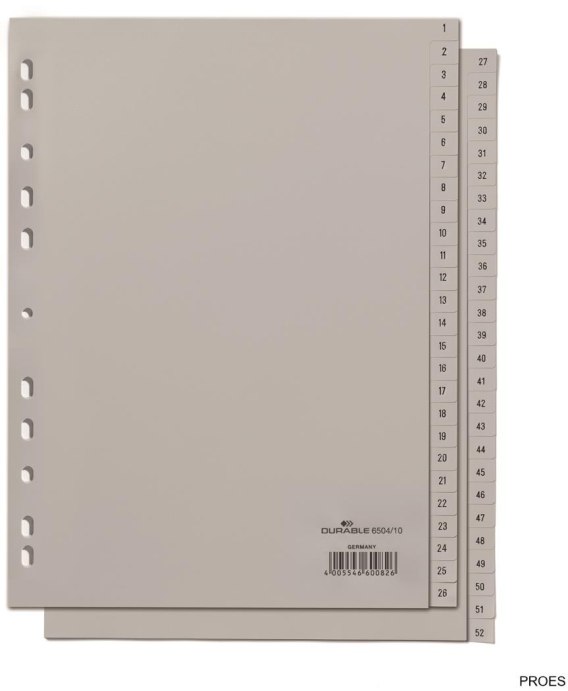 Przekładki PP A4 szare, nadruk, indeksy, dwie sekwencje Szary 650410 DURABLE