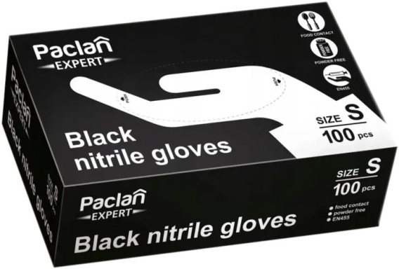 Rękawice nitrylowe czarne S 100szt. PACLAN