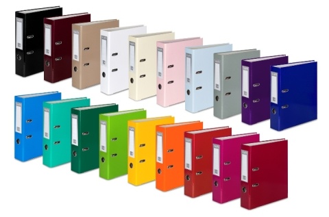 * wykonany z twardej, 2 mm tektury * oklejka kolorowa, pokryta folią polipropylenową * wyklejka papierowa * mechanizm dźwigniowy z
