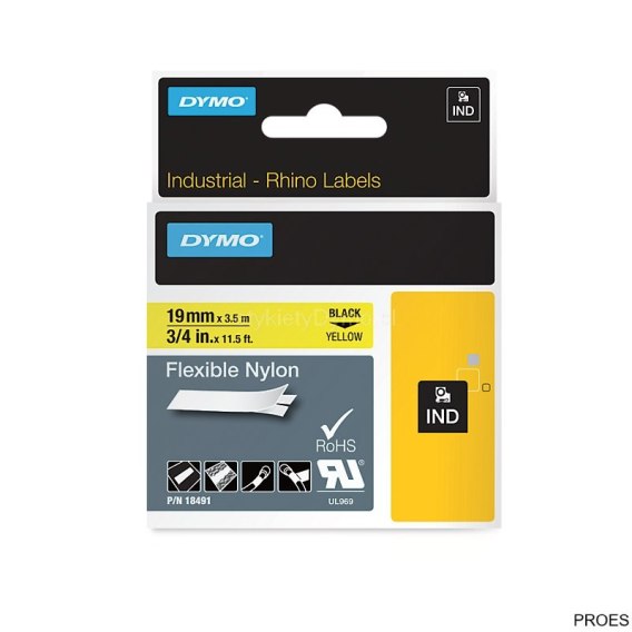 Taśma nylonowa RHINO elastyczna - żółta 19 mm (do opisu kabli i przewodów) 18491 DYMO