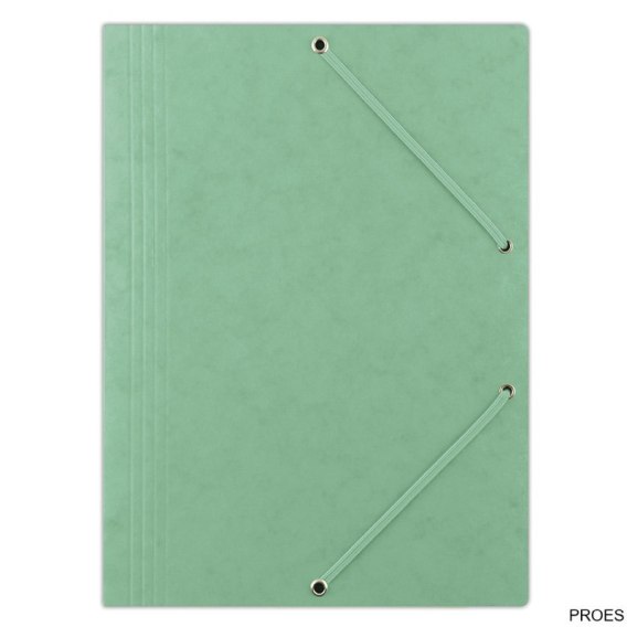 Wykonana z kartonu o gramaturze 390gsm, powlekanego woskiem_posiada Zielony Punkt (Der Gr_ne Punkt) - udział w systemie recyklingu i odzysku odpadów wynikający z przepisów prawa polskiego i UE_3-skrzydłowa_preszpanowa_zamykana za pomocą 2 płaskich, narożnych gumek w kolorze teczki_format: A4_rozmiar: 235x319mm_kolor zielony