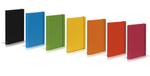 Teczka o szerokości grzbietu 4cm, wykonana z twardej 2mm tektury powleczonej folią PP. Posiada czarną wyklejkę z wysokiej jakości