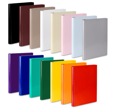 Wykonana z twardej tektury o grubości 2 mm kolorowa oklejka, pokryta folią polipropylenową wyklejka papierowa do formatu A4 lub A5