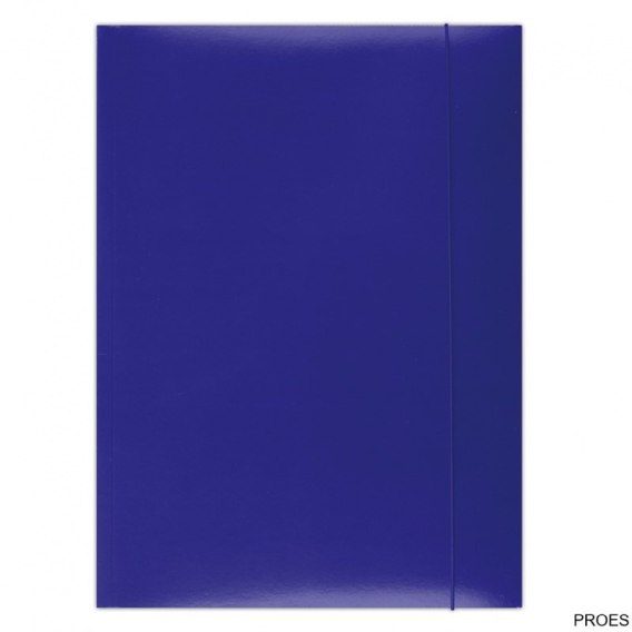 Teczka z gumką, wykonana z barwionego i lakierowanego kartonu o gramaturze 350gsm_3-skrzydłowa, lakierowana_zamykana za pomocą gumki wzdłuż dłuższego boku_format: A4_rozmiar: 232x320mm_kolor niebieski